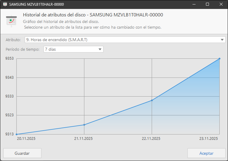 Kerish Disk Health - Captura del historial del disco en formato PNG