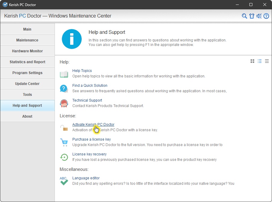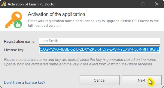 Please consult the step-by-step guide to activating Kerish PC Doctor using a license key.