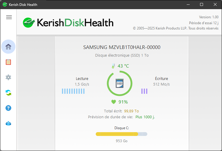Kerish Disk Health – Capture de la fenêtre principale au format PNG