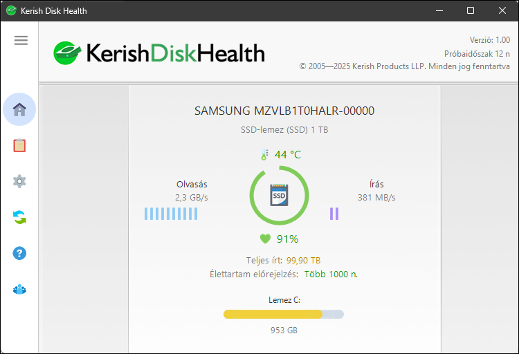 Kerish Disk Health - A lemezinformációk képernyőképe PNG formátumban