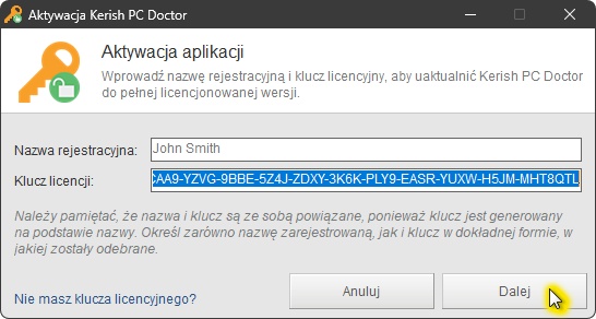 Jak aktywować program Kerish PC Doctor za pomocą klucza?