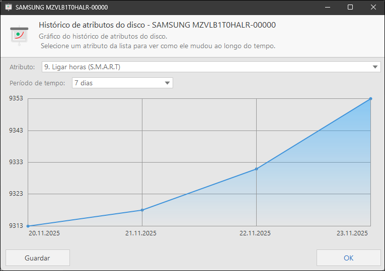Kerish Disk Health - Captura do histórico do disco em formato PNG