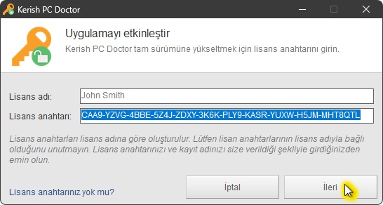 Bir lisans anahtarı kullanarak Kerish PC Doctor nasıl etkinleştirilir?