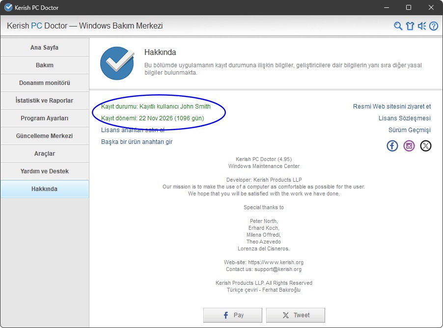 Lisansın sona erme tarihini ve süresinin dolmasına kalan gün sayısını Hakkında bölümünde görebilirsiniz.